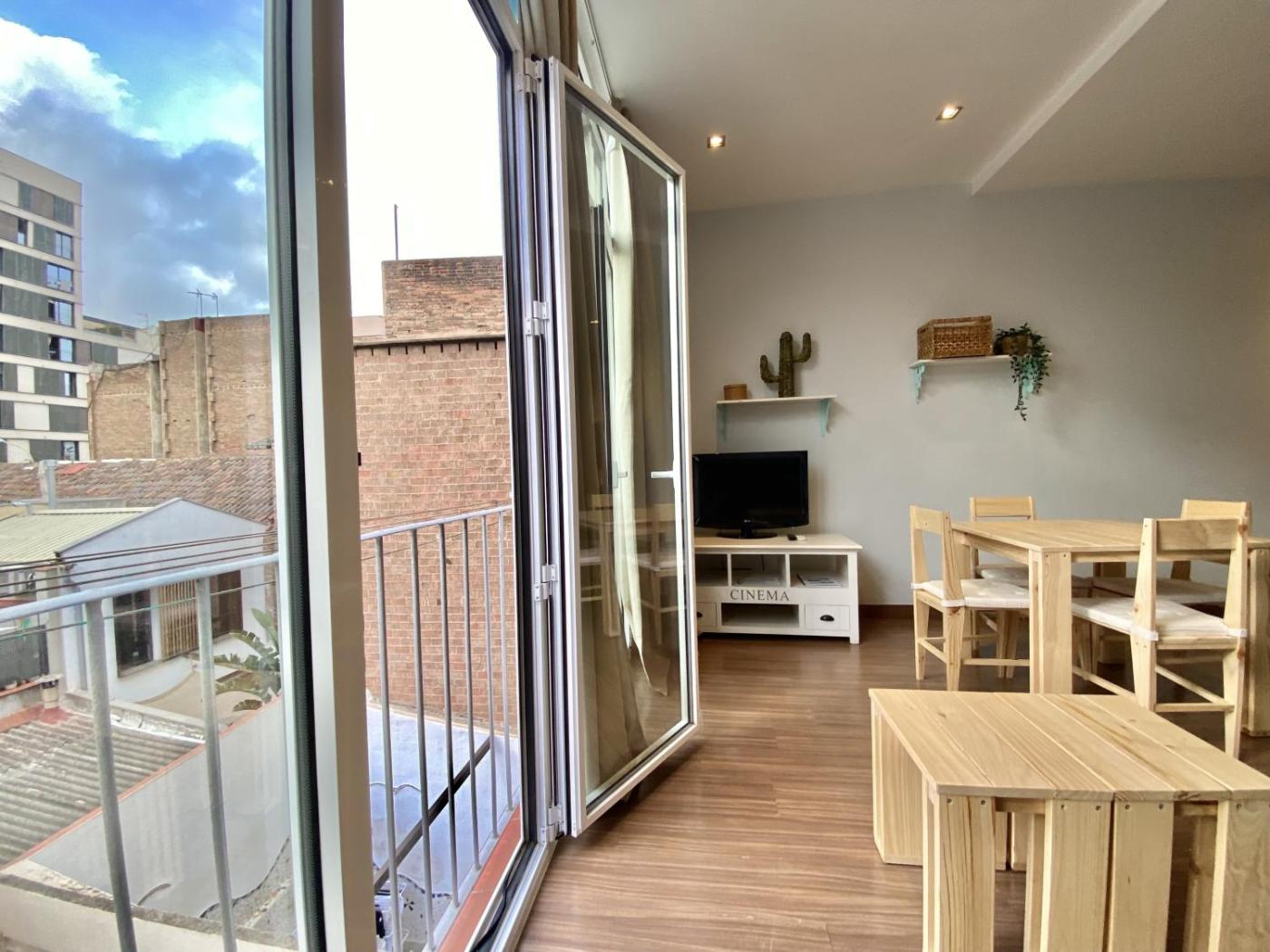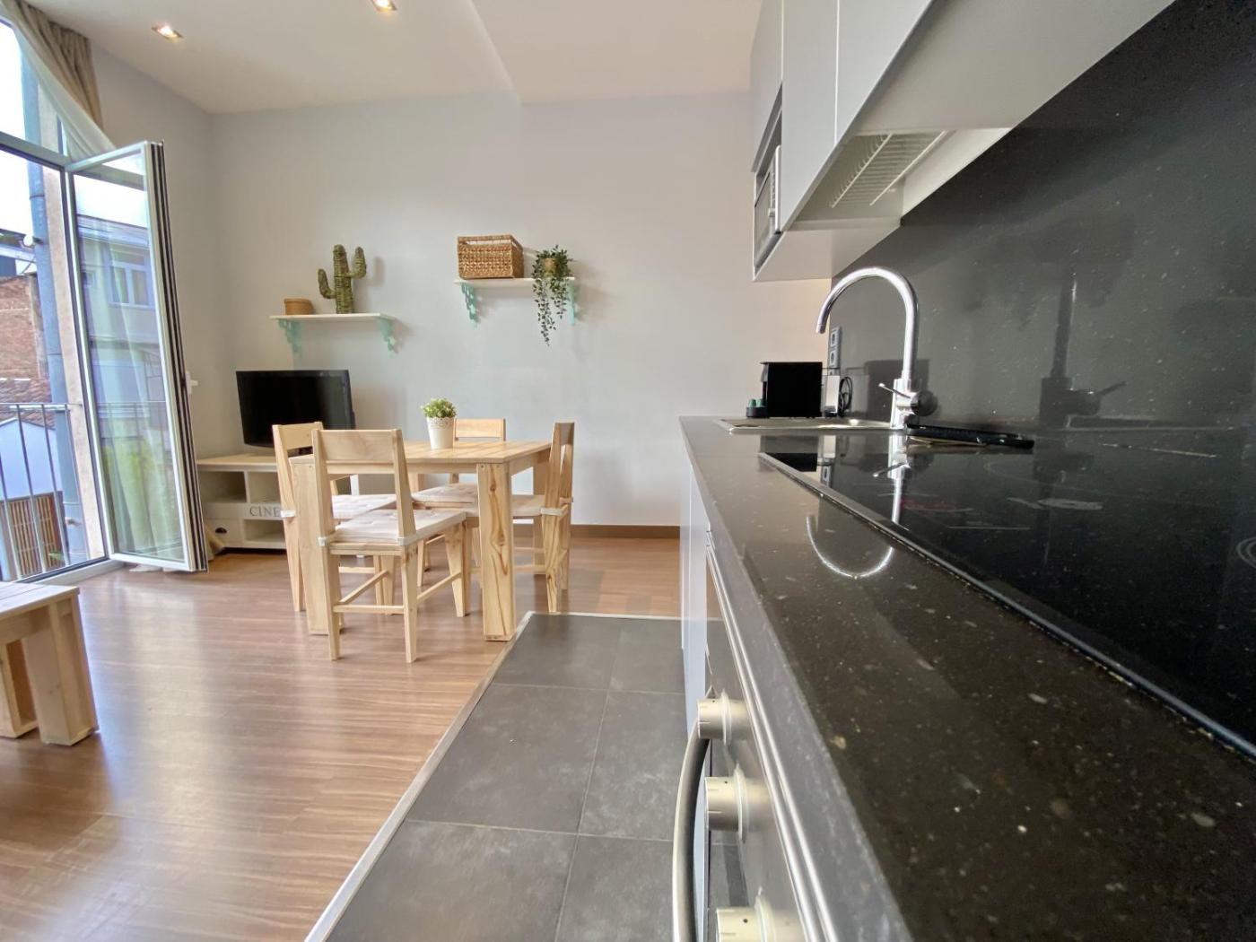 Estos apartamentos, situados en la 1ª y 2ª planta del edificio, disponen de una terraza común en la azotea con tumbonas y vistas a la torre Agbar. Presentan un estilo moderno y tienen suelo de madera. Todos ellos cuentan con 1 dormitorio doble, zona de estar con sofá cama y TV de pantalla plana, cocina con microondas y horno y baño con ducha, secador de pelo y artículos de aseo gratuitos.