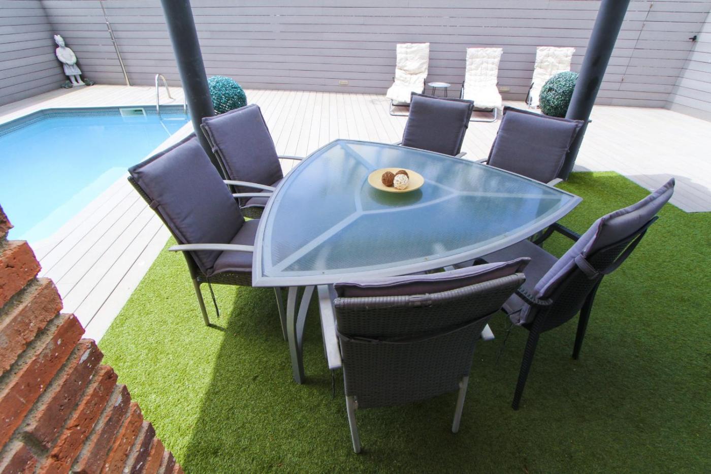 Casa. The private pool is the special feature of this holiday home. This spacious holiday home comprises 1 living room, 4 separate bedrooms and 4 bathrooms with a bath and a shower. The fully equipped kitchen has a refrigerator, a dishwasher, kitchenware and an oven. This holiday home is air-conditioned and features a washing machine, a tea and coffee maker as well as a terrace with pool views. The unit offers 6 beds.